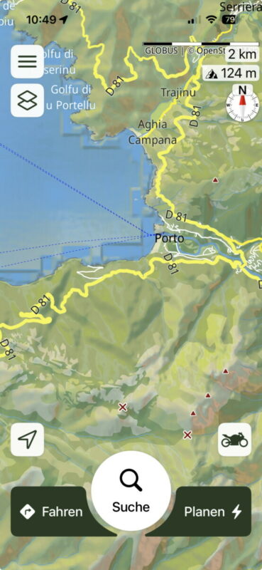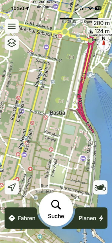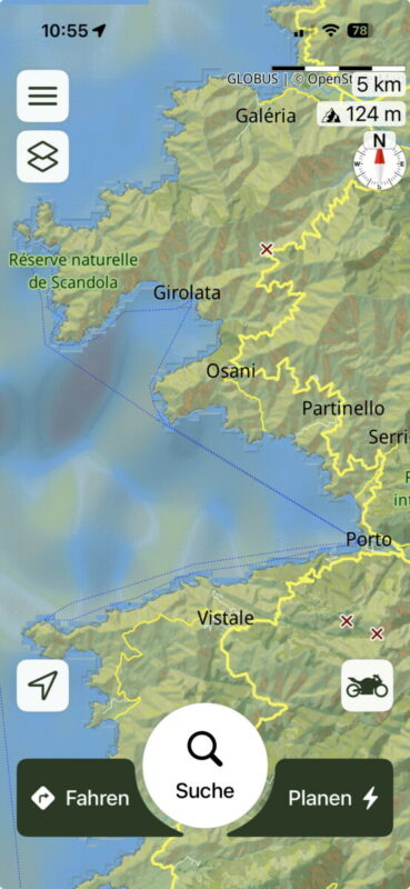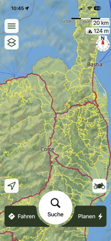 I used to travel around France with the wonderful Michelin paper maps. So I tried to create that map style for my SCENIC navigation. As the maps are a bit different in different countries, I made this map specially for Korsika. Towns and villages are shown earlier than in my home location in Germany. I altered the colors for ground categories as well as for streets and text. I always use the overlay Relief so that the landscape caracteristics look smoother.