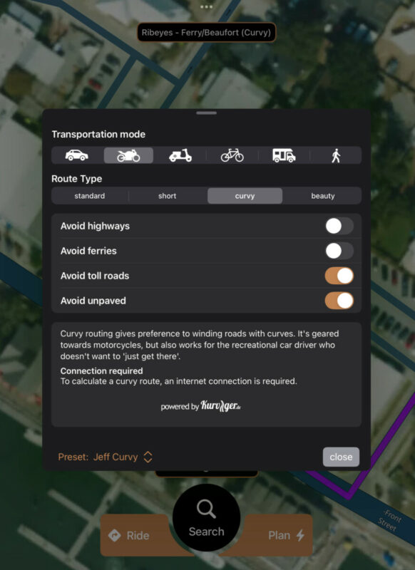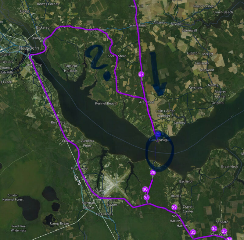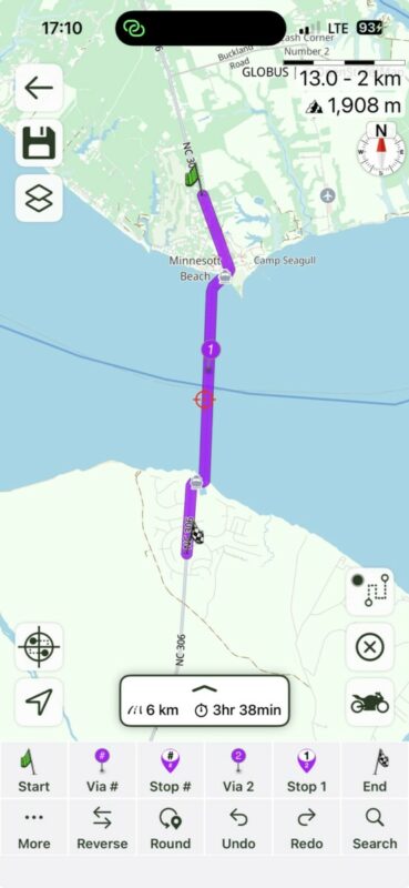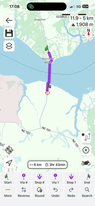 So, here is a route planned and it appears to be directing the route onto a ferry (turned on to allow) so that isn’t an issue but then it also seems to show the route backtracking and going around (marked with a “?”) to the left.