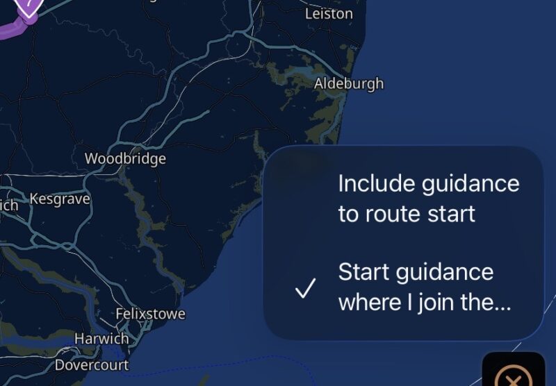 On the second screenshot shot, if I select this can I join anywhere along the route and the app will guide me from there?