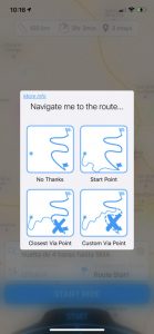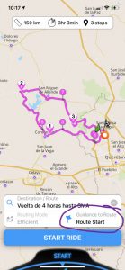 Ich denke auch, dass Sie die Route vielleicht als Offroad-Strecke gespeichert haben. Dies erklärt, warum Sie nicht die Option erhalten, zum Start zu führen. Offroad-Strecken erhalten keine turn-by-turn navigation. Hier sind weitere Infos dazu: https://scenic.app/scenic-unterstutzung/routen-vs-tracks-und-blaue-linie-als-track-speichern-wahrend-des-imports/