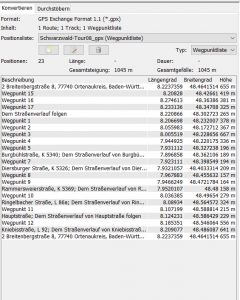 ich habe eine Tour bei Kurvenkönig.de im .gpx Format heruntergeladen und mit Routconverter auf meine Erfordernisse angepasst. Das ist die Routenliste