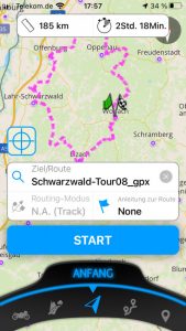 Ich habe die modifizierte . gpx Datei in die Scenic App geladen, aber z. B. ist der Touren Start und Endpunkt immer noch wie in der ursprünglichen Kurvenkönig Datei.