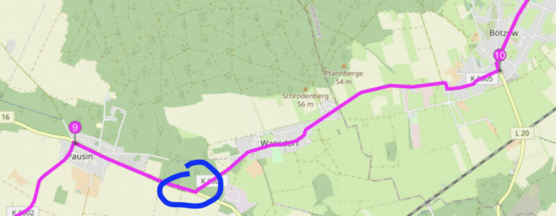 I wanted to ride a route yesterday. In the beginning everything was very promising. Only at one intersection did the turn-off instruction appear directly on the intersection, which was a bit late, but since I knew that the turn could be there, I managed to do it. In the last half, on the other hand, I sometimes missed the hints completely. The 108 kilometers became 128 kilometers.
